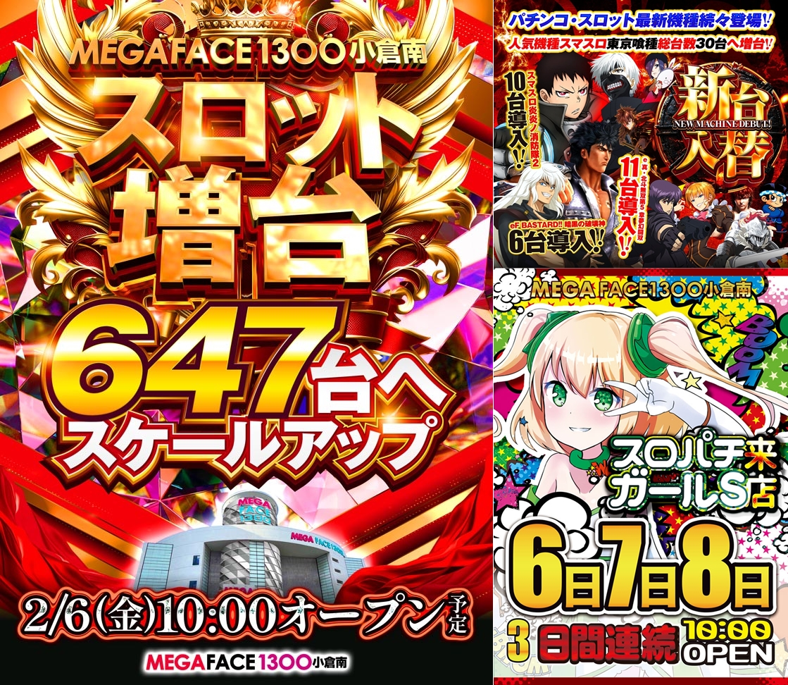 1300小倉南【スロット増台&スロパチガールS来店】
