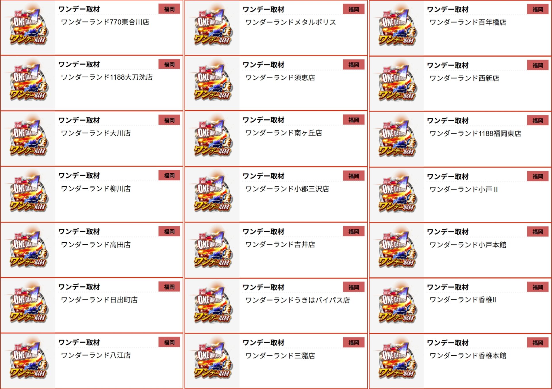 ワンダーランド全店合同【ワンデー取材】