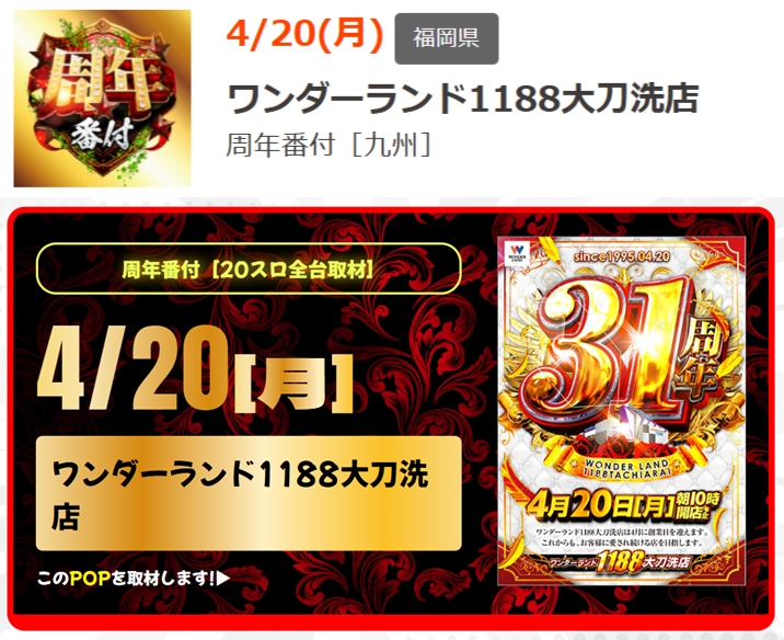 福岡を中心に九州の特定日(旧イベント日)・周年・イベント系・来店などに注目して気になるホールの設定状況などを掲載