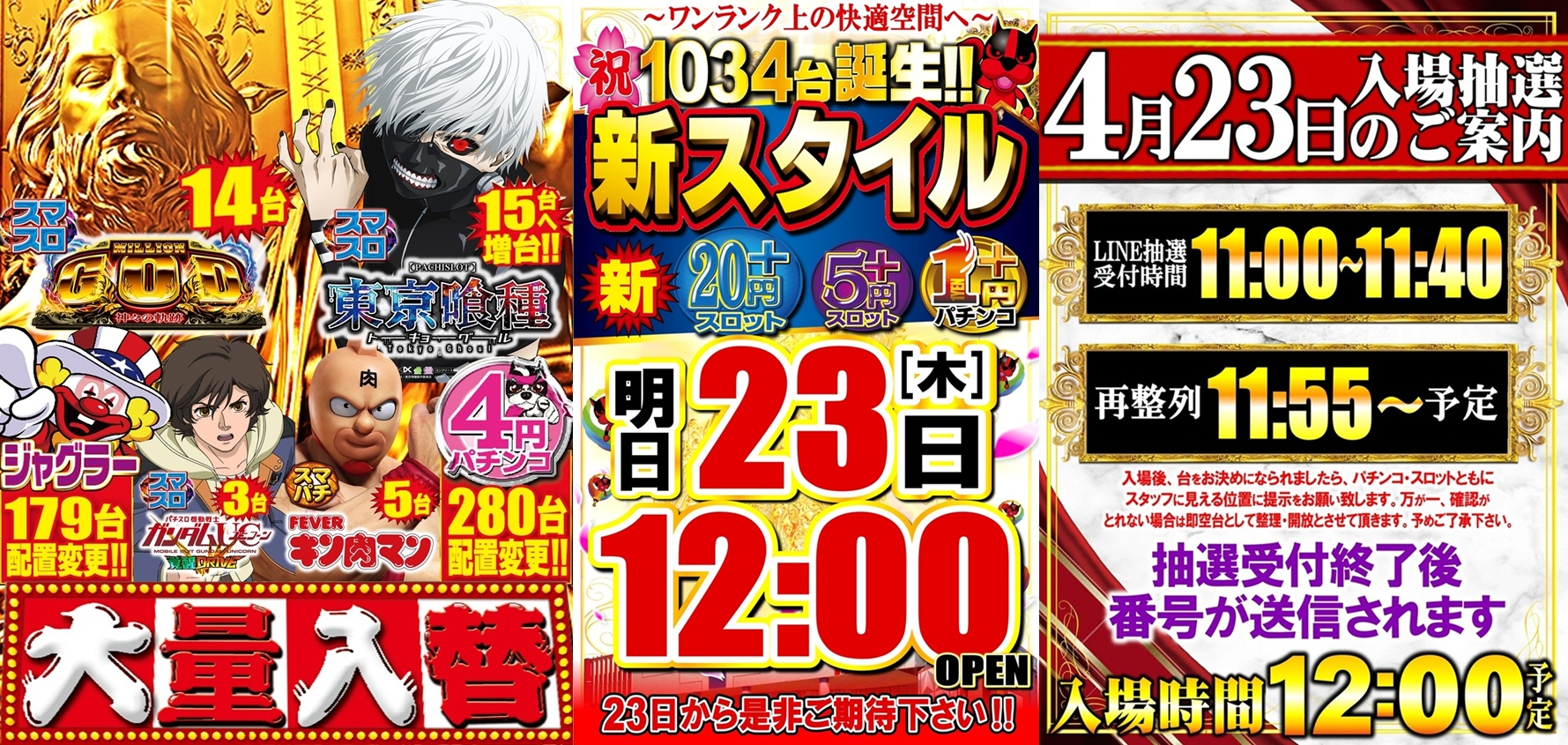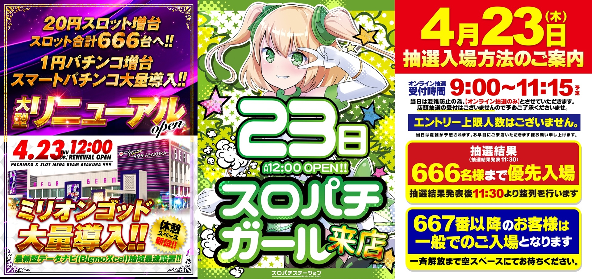 朝倉999【リニューアル12時OP&スロパチガールS来店】