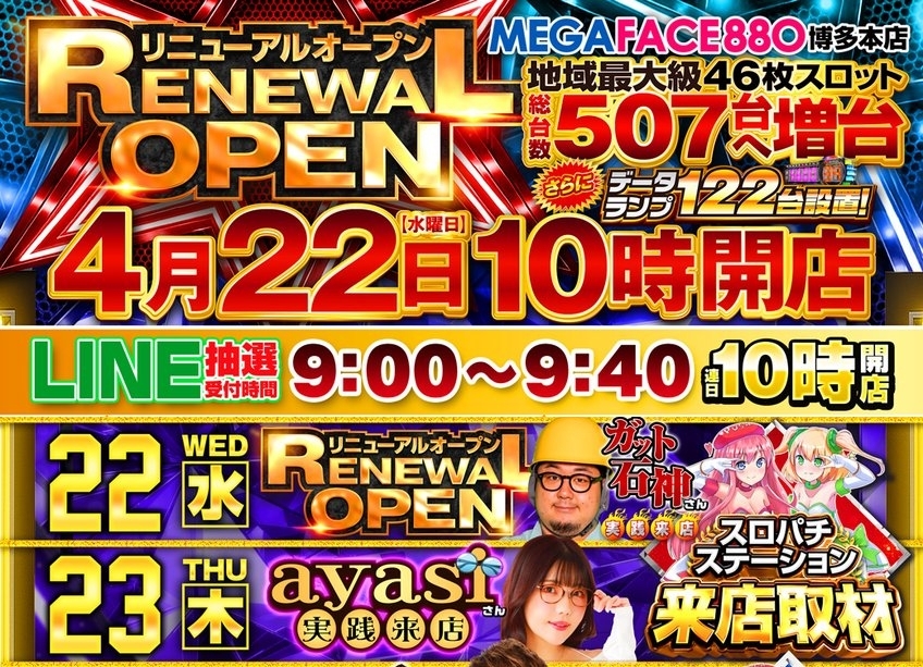 880博多【リニューアル2日目&スロパチ取材(赤)&ayasi来店】