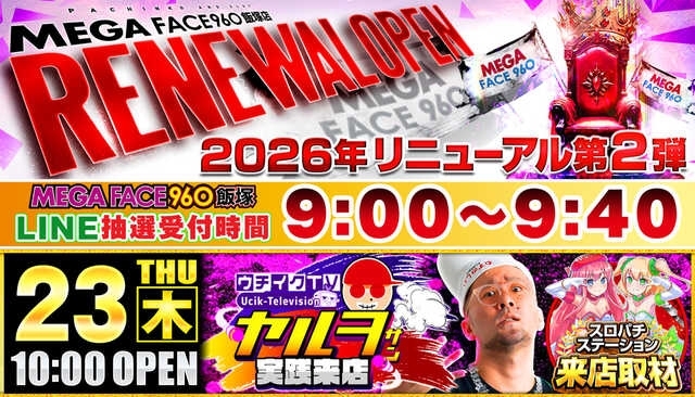 960飯塚【リニューアル2日目&スロパチ取材(赤)&ヤルヲ来店】
