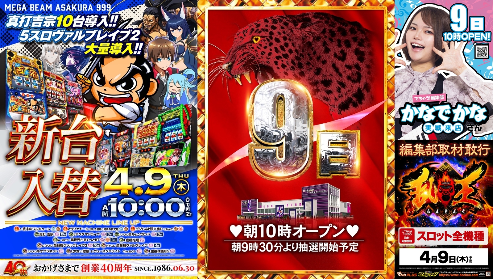メガビーム朝倉999【新台入替&スロット乱王&かなでかな来店】