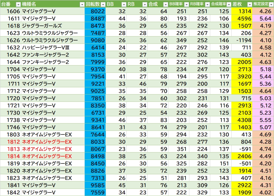 平均差枚:-1795枚