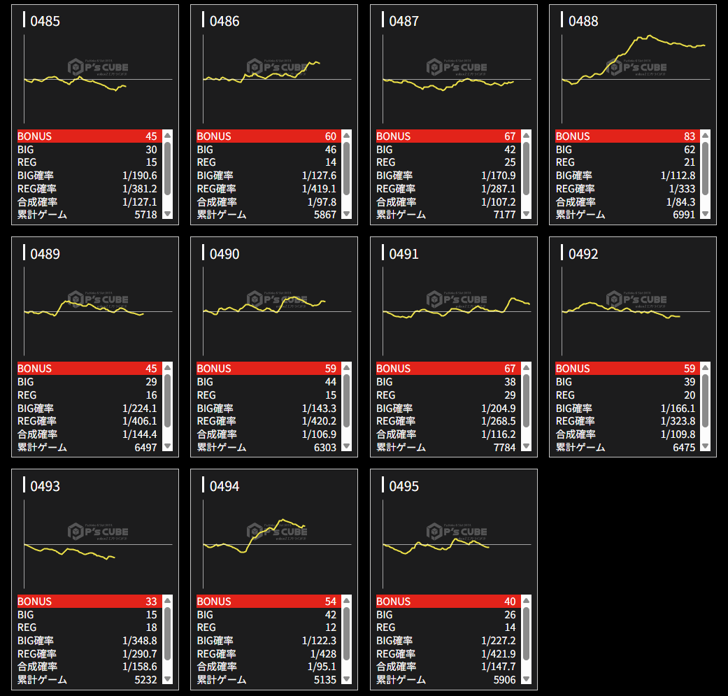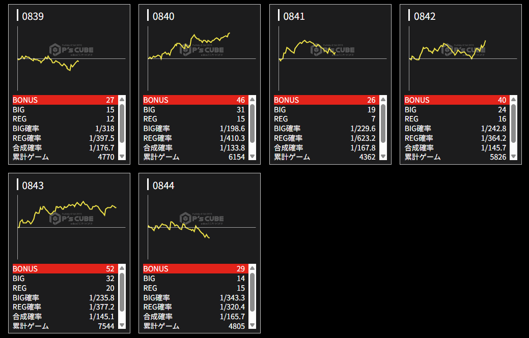 機種名 台番 G数 差枚