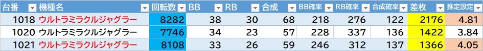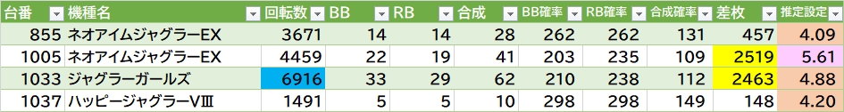 機種名 台番 G数 差枚