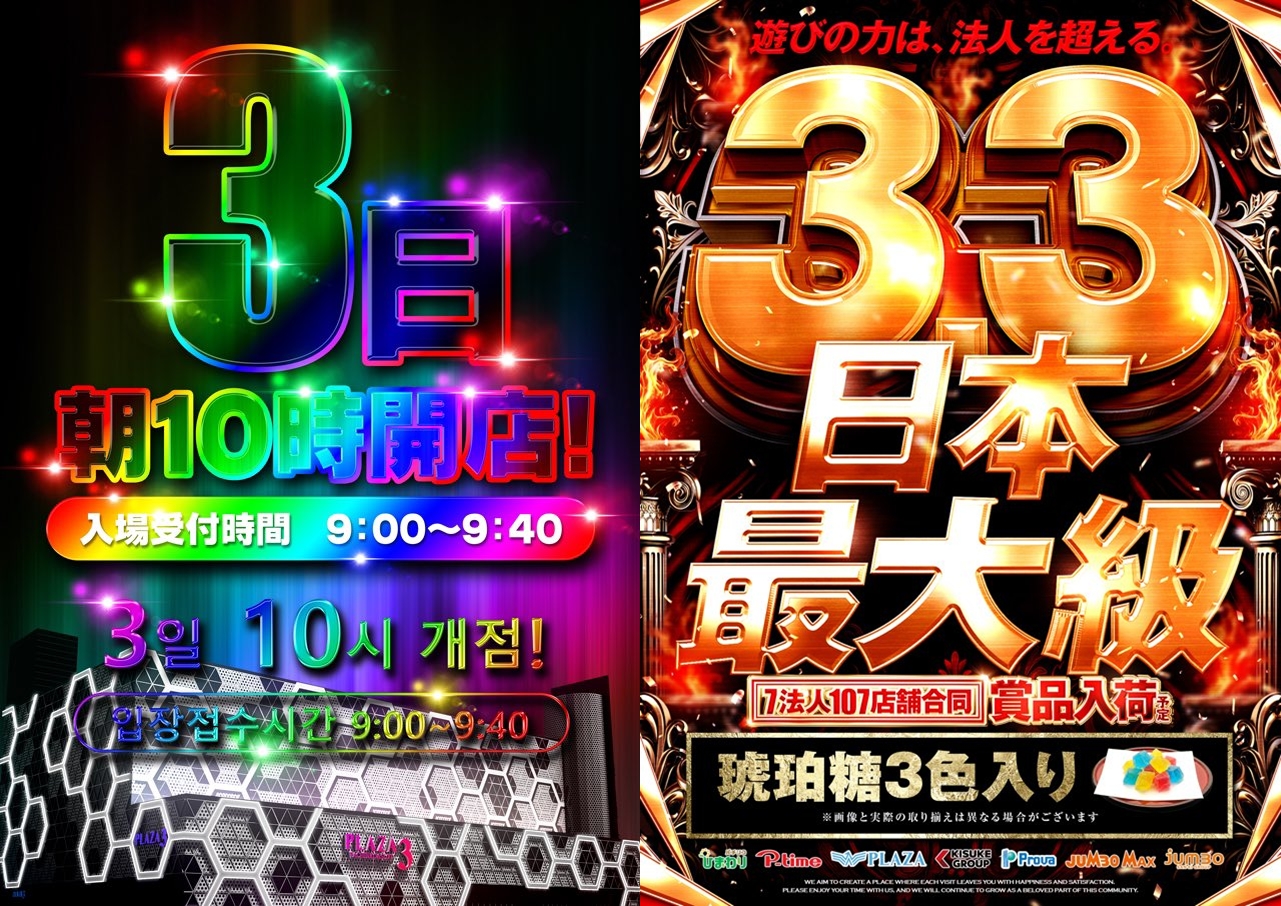 3月3日の3がつく日×日本最大級 7法人107店舗合同賞品入荷