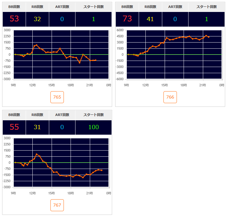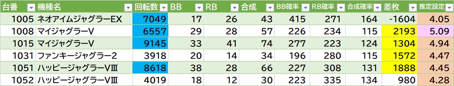 | 機種名 | 台番 | G数 | 差枚 |