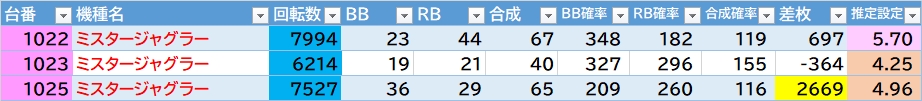 平均差枚:-1054枚