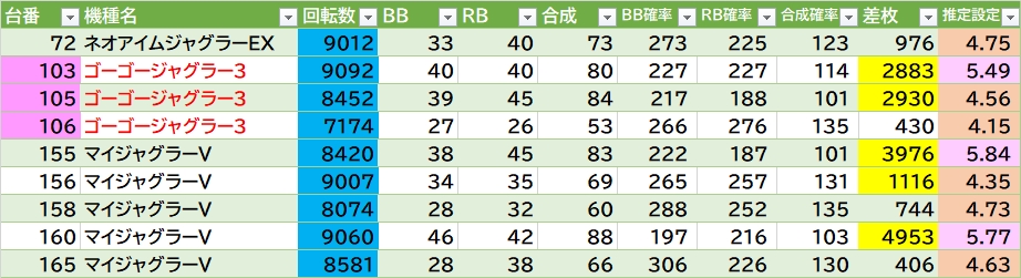平均差枚:-2574枚