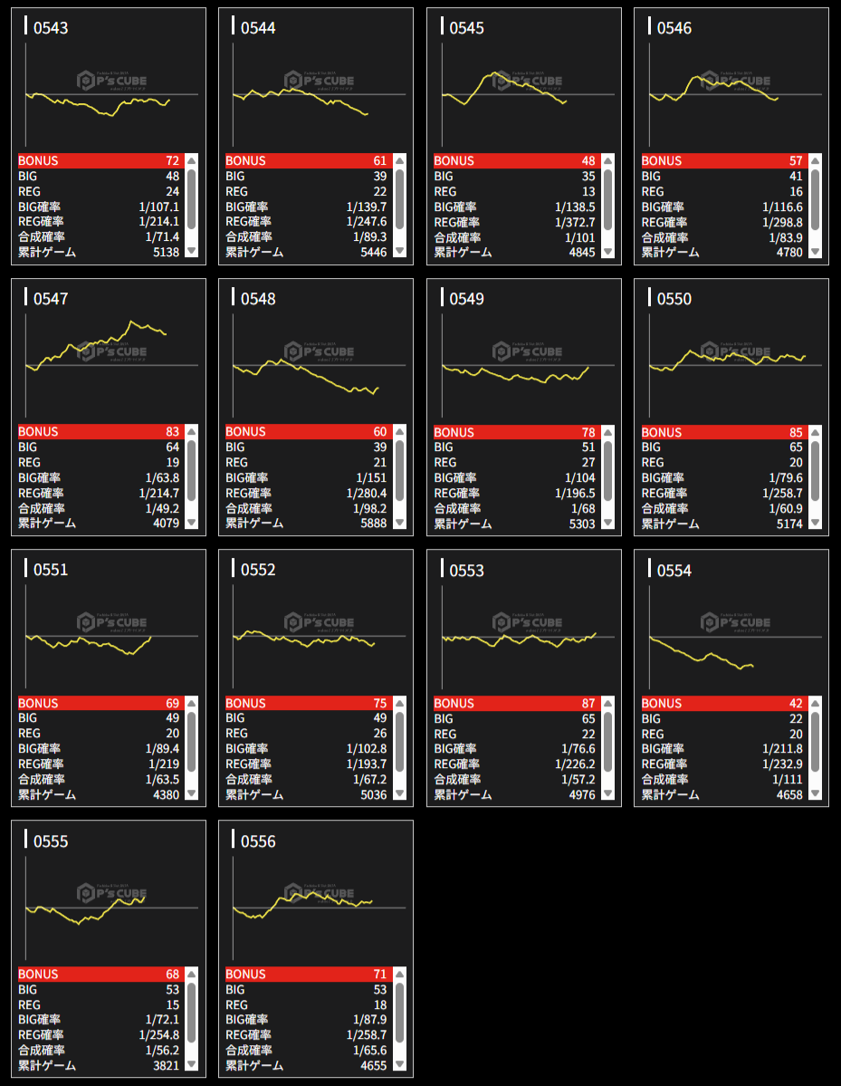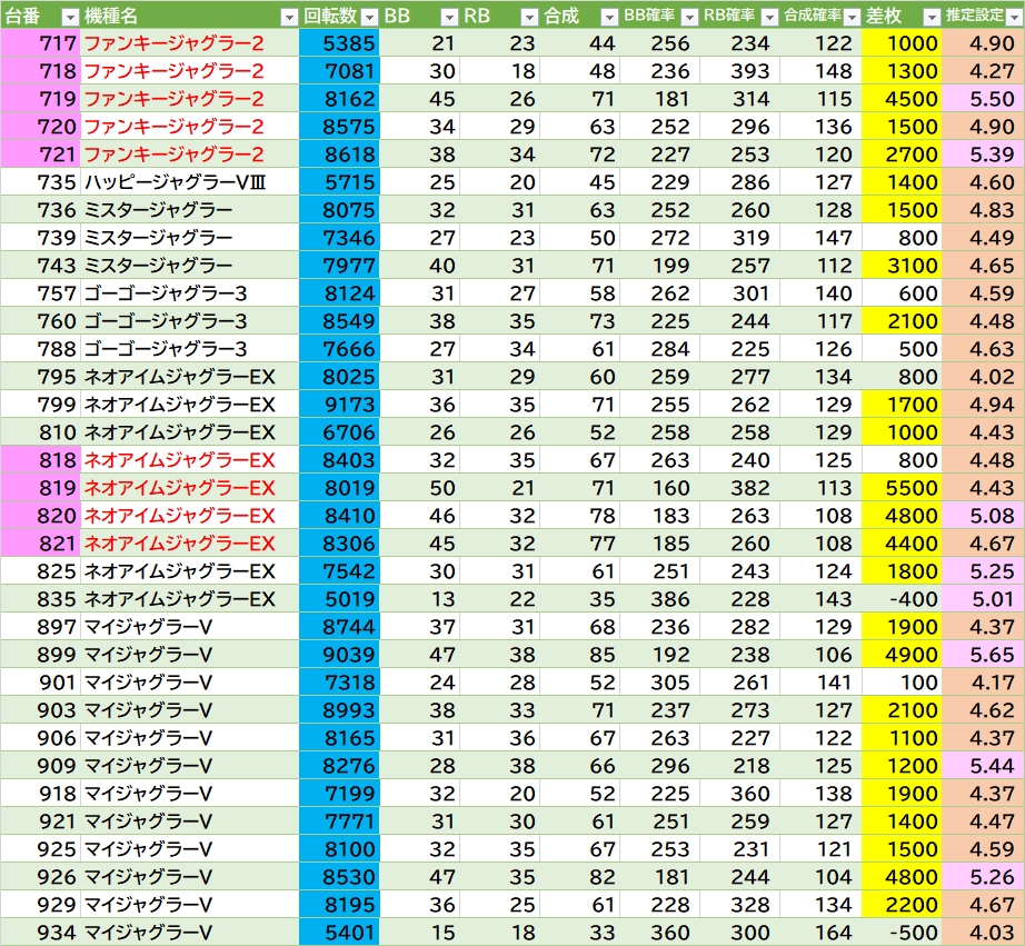 | 機種名 | 台番 | G数 | 差枚 |