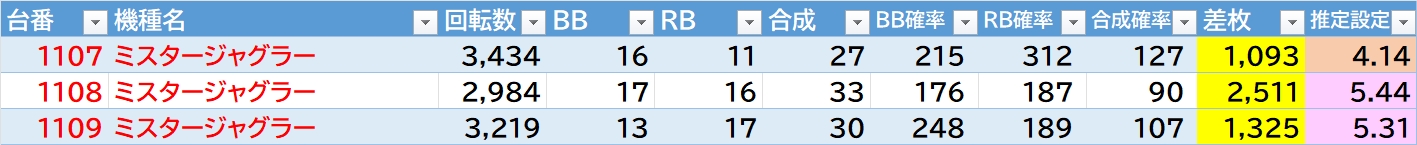 ゴーゴージャグラー3 1017 3,472 -1,512