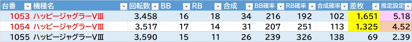 ゴーゴージャグラー3 1020 3,211 -1,000