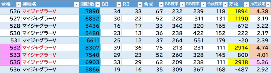 平均差枚:-3526枚