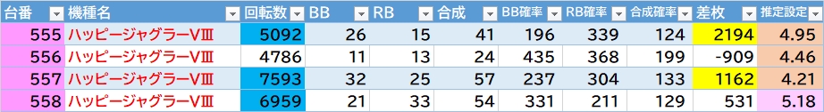 平均差枚:-554枚