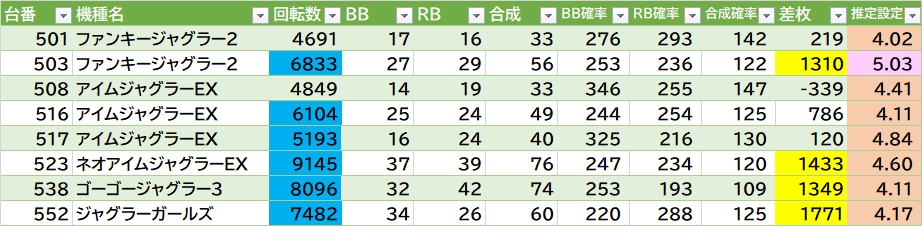 | 総差枚 |