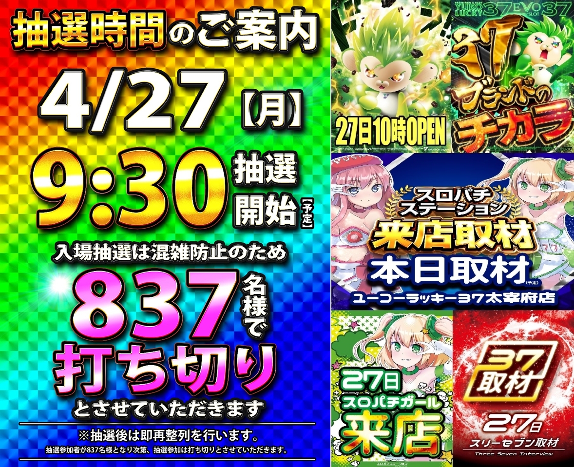 4/27(月) ユーコーラッキー37太宰府結果まとめ