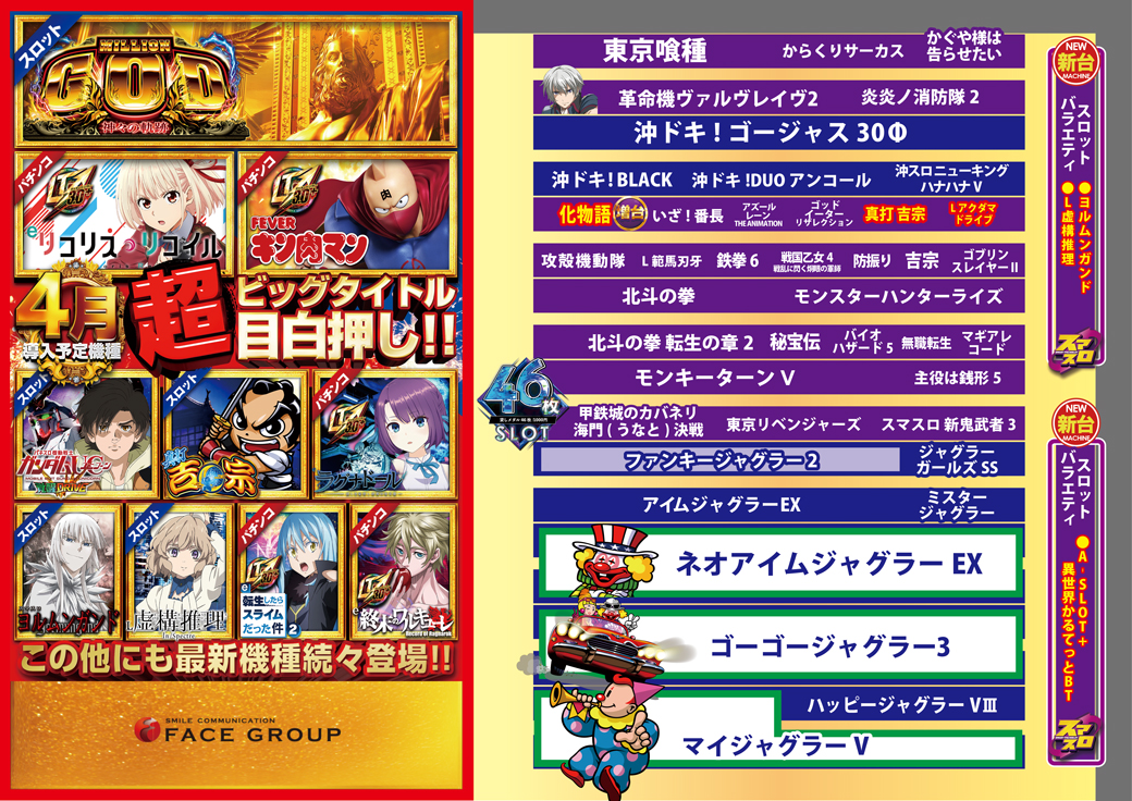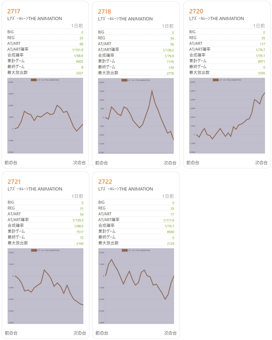 フェイスグループ全店合同。気になったのは「アズールレーン」「攻殻機動隊」の2機種。前回3月3日の結果👉3/3 福岡11店舗まとめ