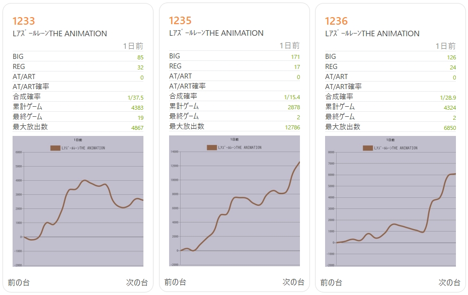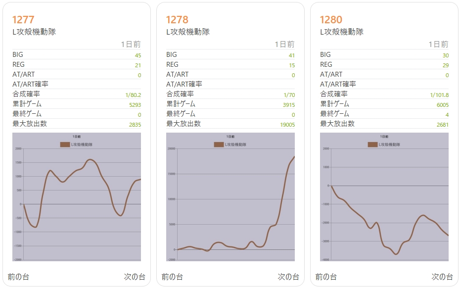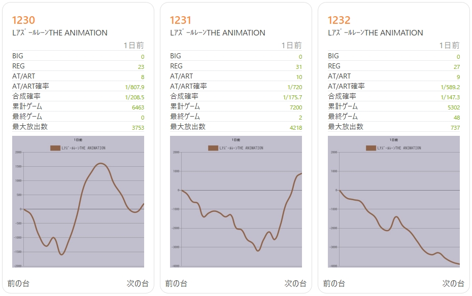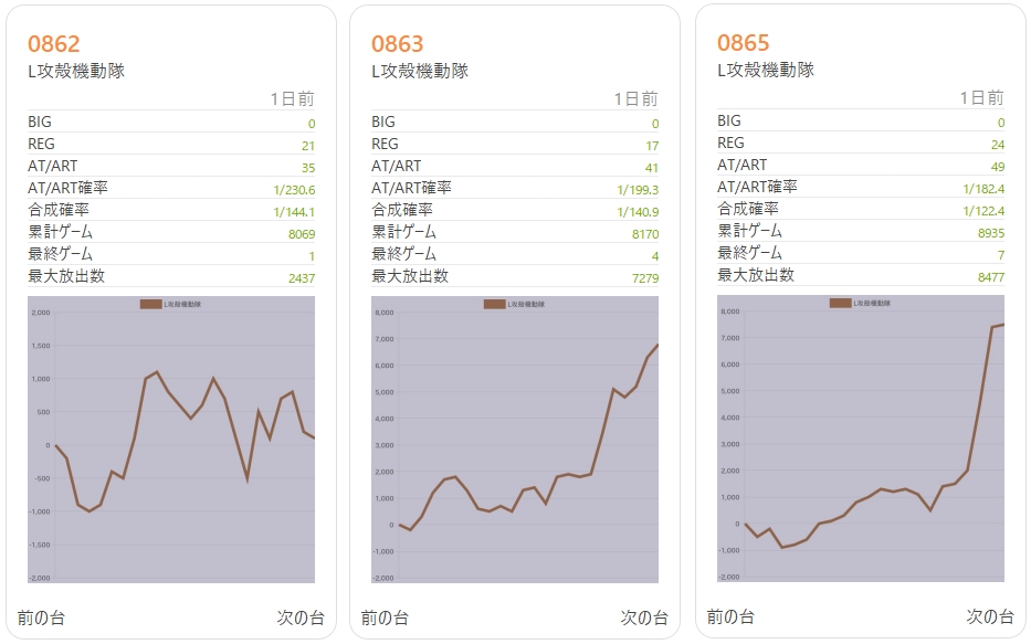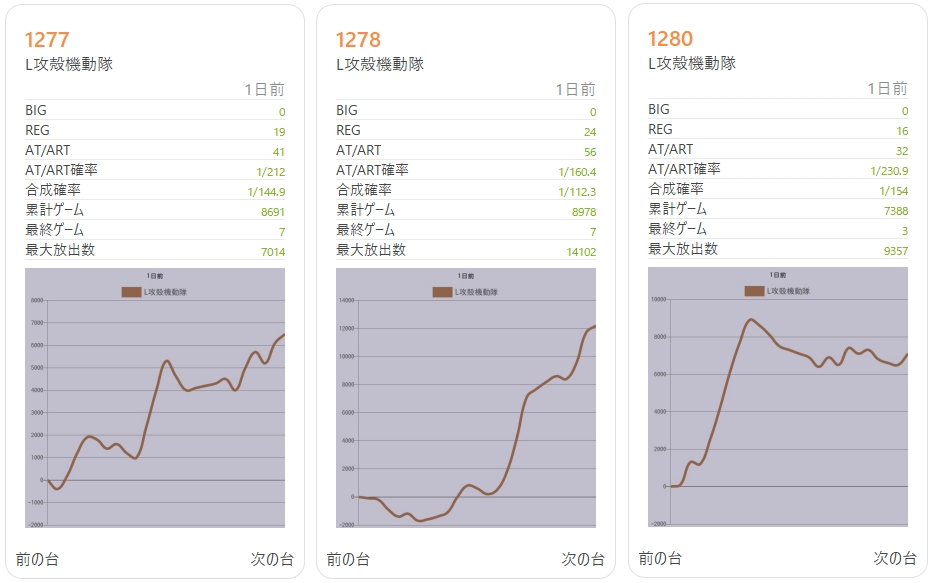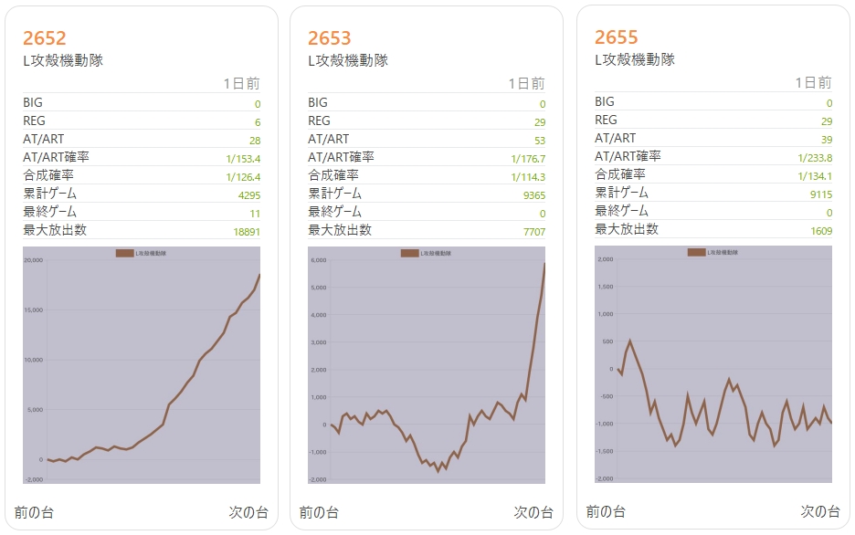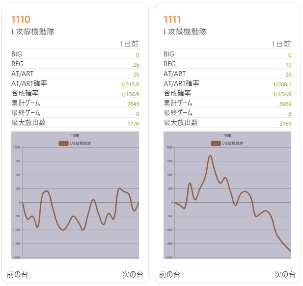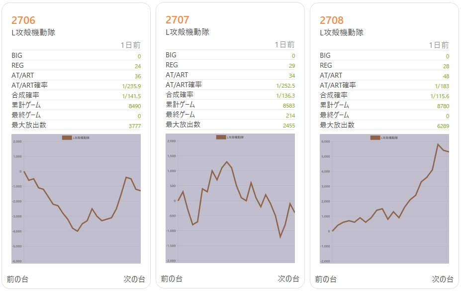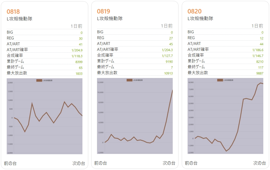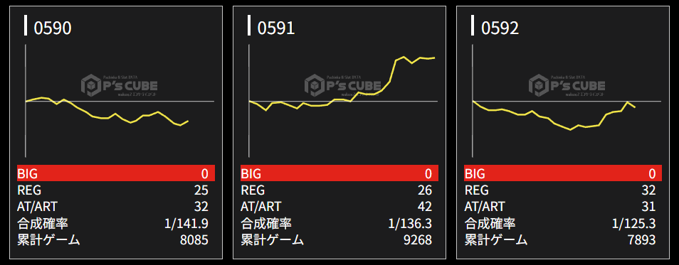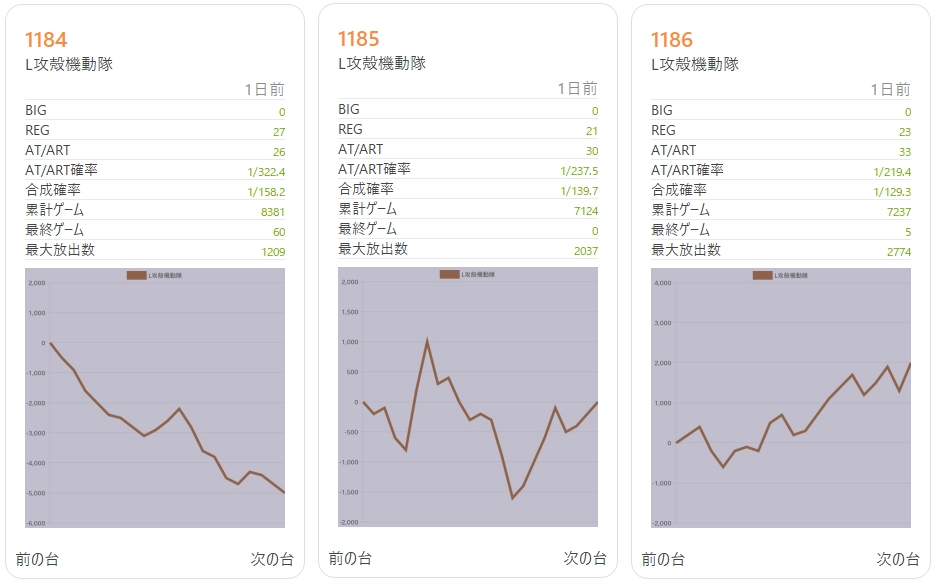 ※飯塚は差枚がわかるグラフが見れなかった為、「G数」「勝率」のみ掲載。