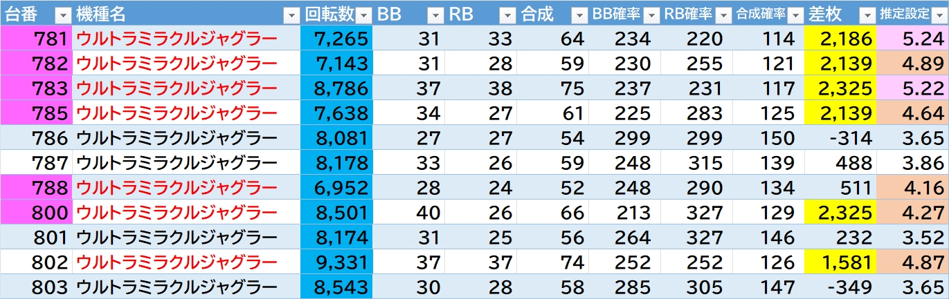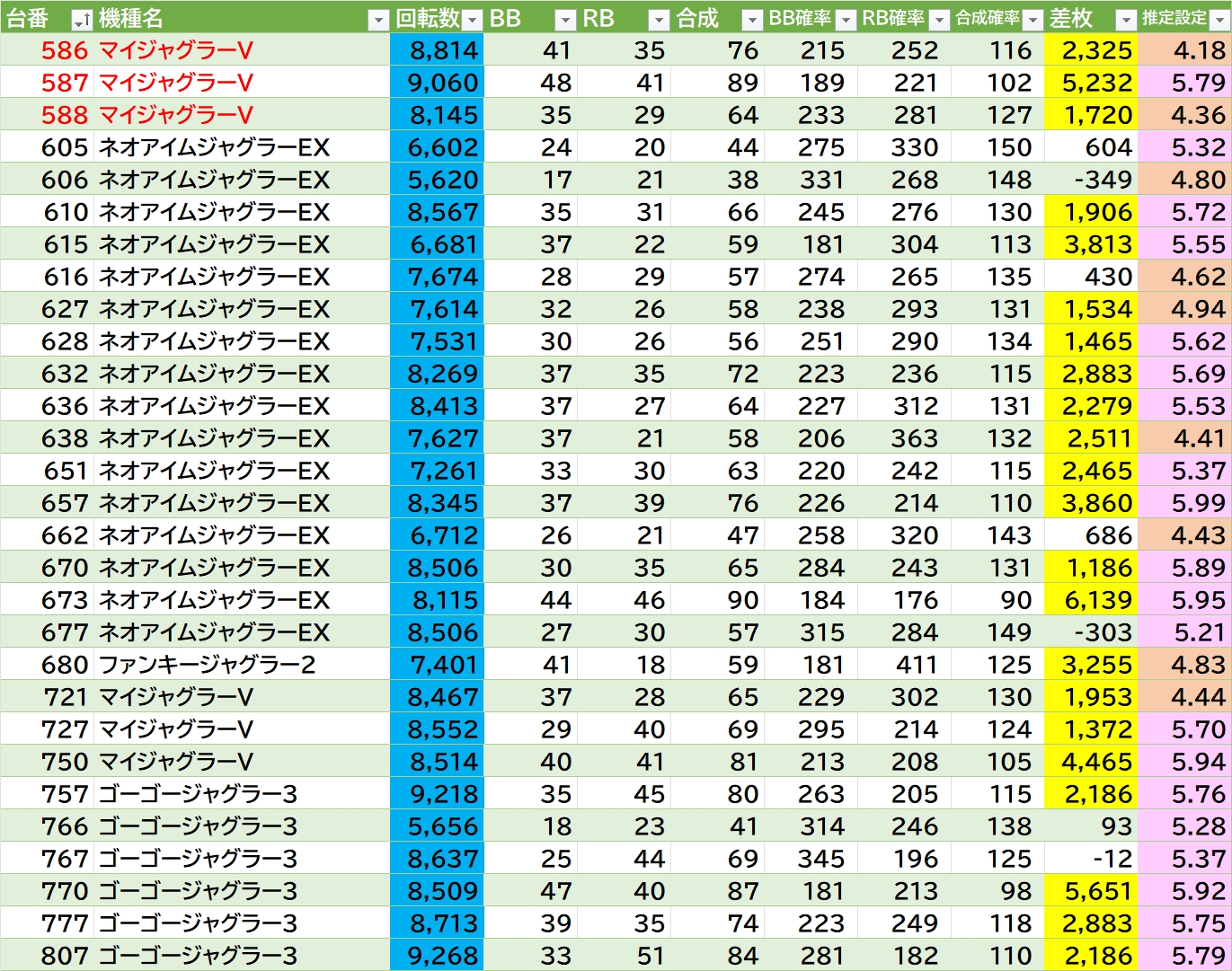 | スマスロ北斗の拳 | 1735 | 6,402 | 7,813 |