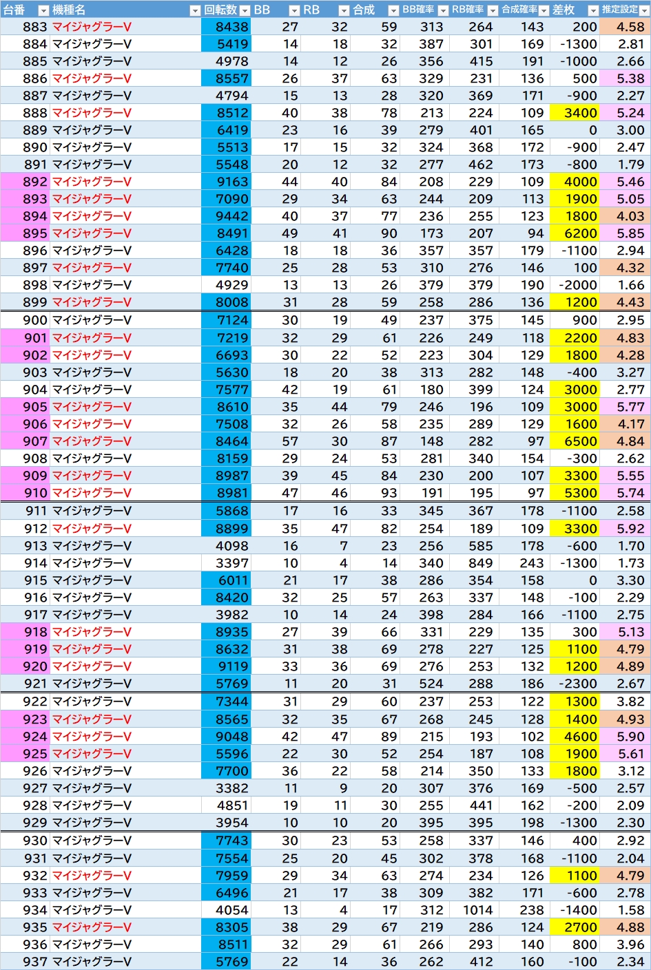 | ゴーゴージャグラー3 | 783 | 800枚 | 8101G | 103.3 |