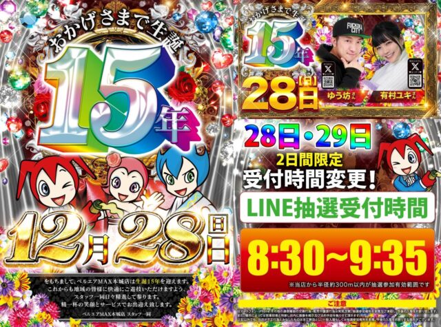 2025/12/29 ゆう坊来店, ベルエアMAX本城店, 周年, 有村ユキ来店